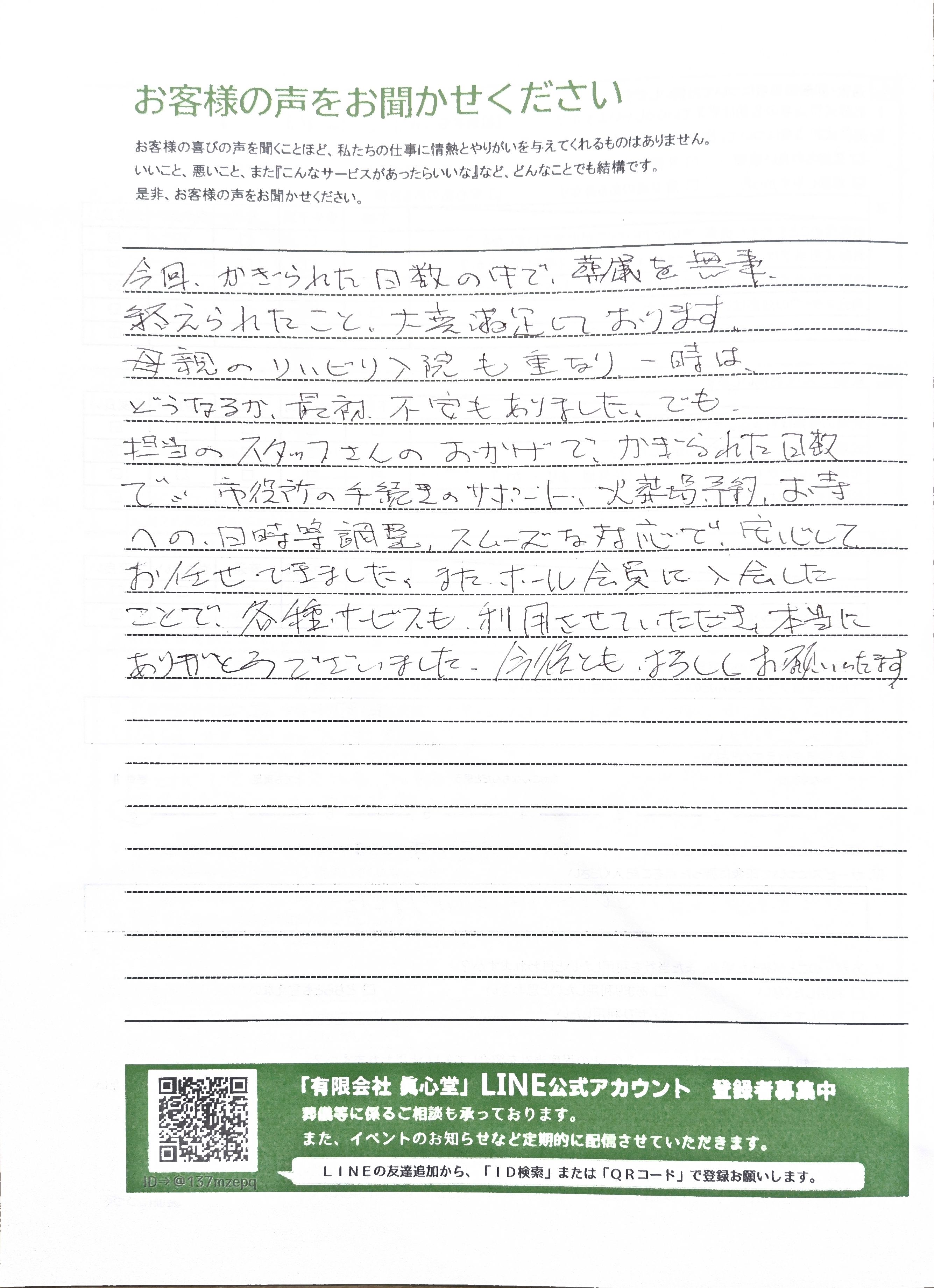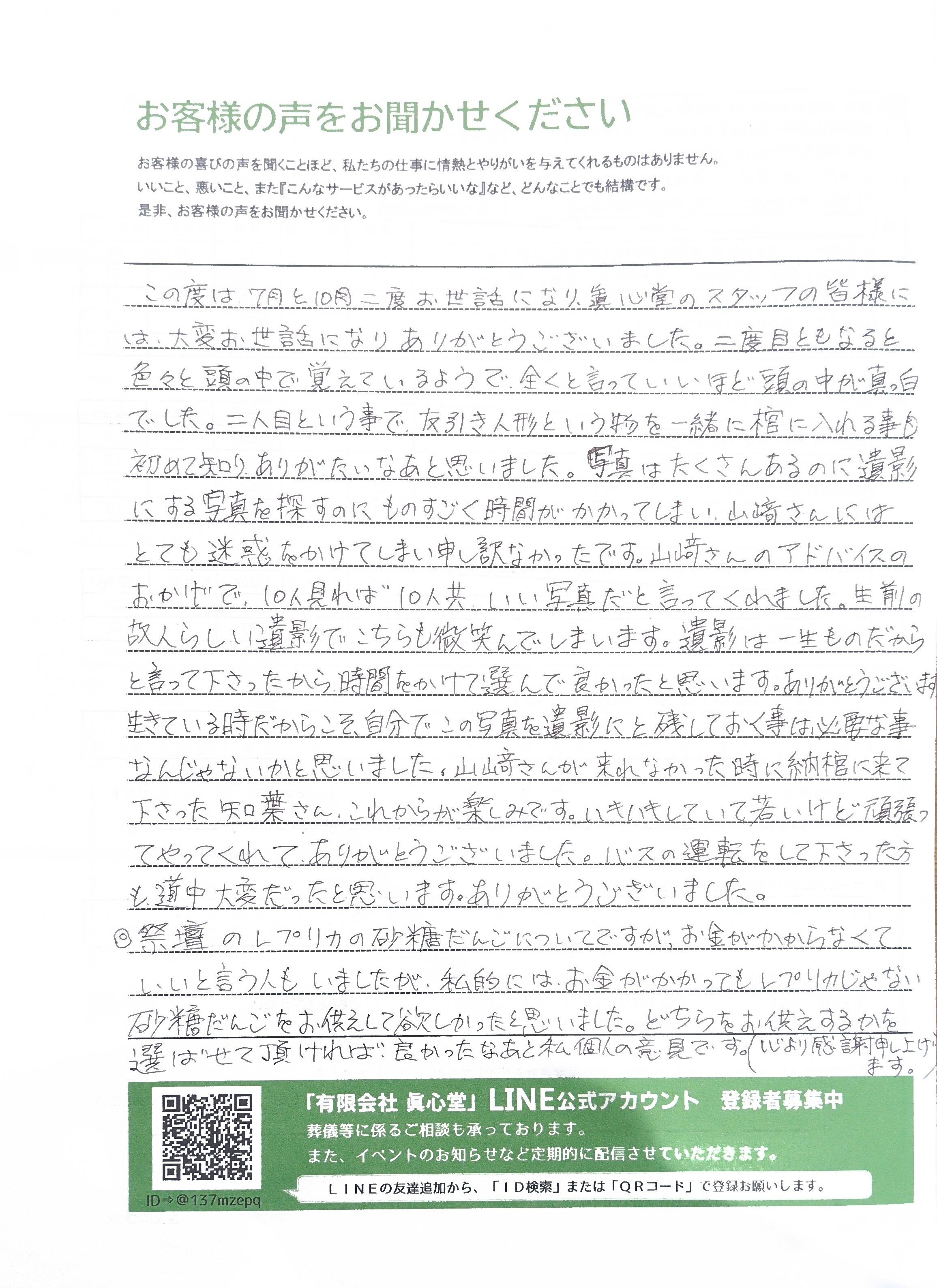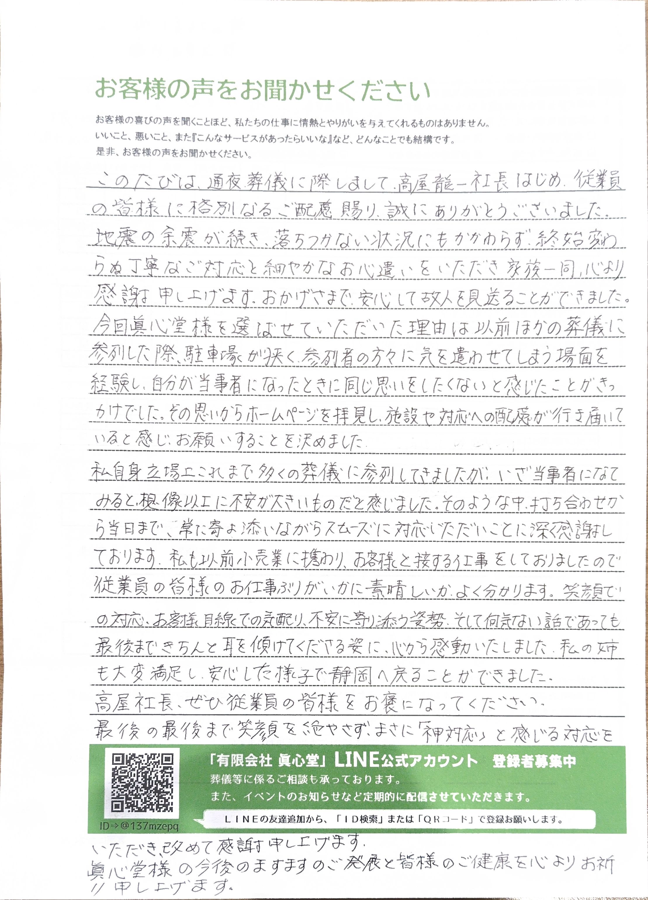 2018/09/08上北郡 O様からご意見を頂戴しました。 -