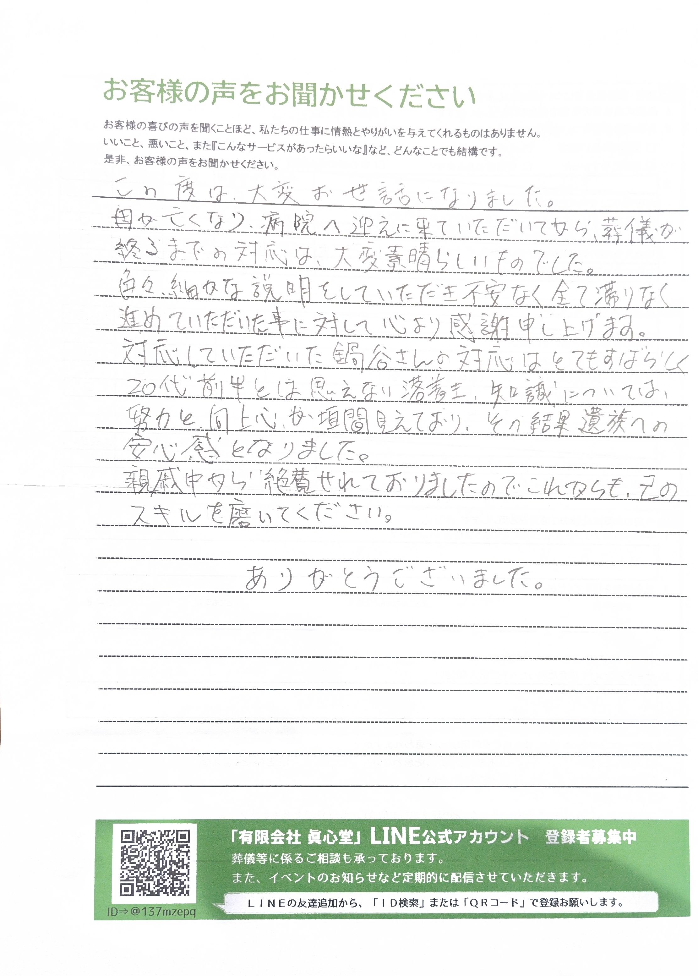 2018/12/04東通村 O様からのご意見を頂戴しました。 -